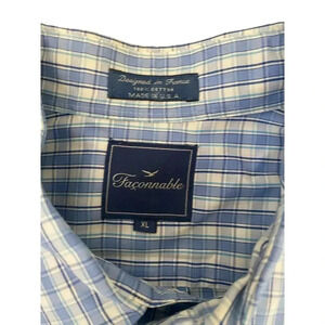 Faconnable Men's Blue & White Plaid Short Sleeve Button Down Shirt Size XL