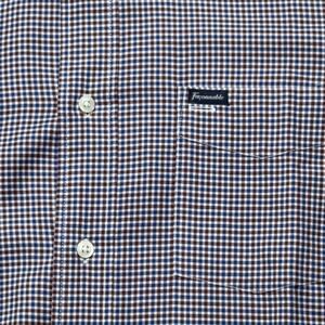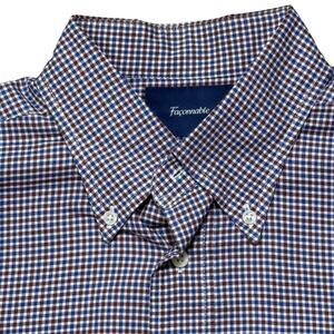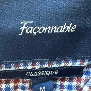 Faconnable Mens Button Down Red White Blue Check Plaid Short Sleeve Shirt Medium