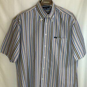 MEN'S 100% COTTON BUTTON DOWN COLLAR BUTTON UP SHORT SLEEVE STRIPED SHIRT W/ POCKET