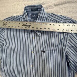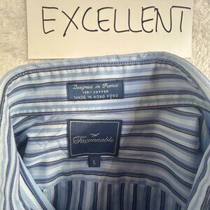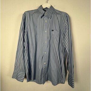 Faconnable Mens Long Sleeve Striped Button-Up Shirt Size Large Blue White Cotton
