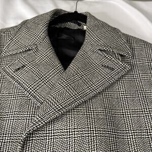 Faconnable Mens Overcoat 40US/50 Italy Black Herringbone 100% Wool Made in Italy