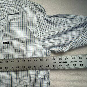 Faconnable Men's Plaid Collared Long Sleeve Button Up Shirt White/Blue Large