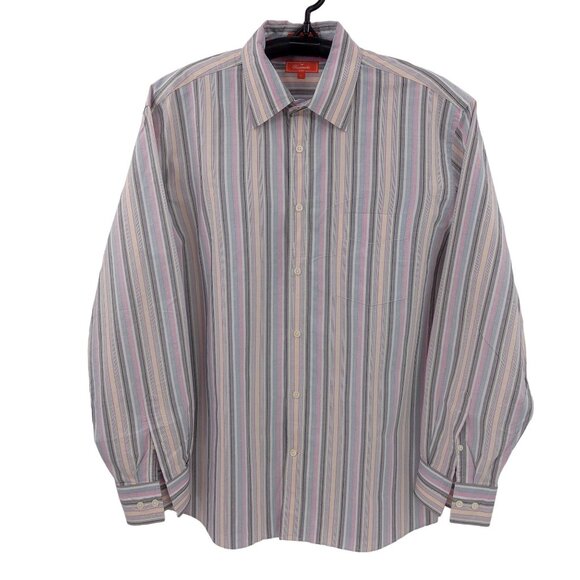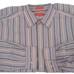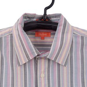 Faconnable Mens Striped Shirt Size L Large Pastel Button Front Pocket