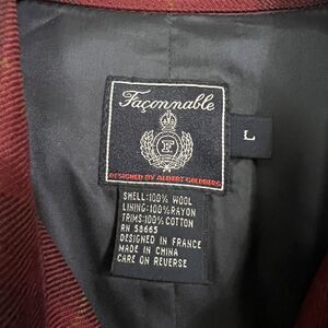 Faconnable Mens Wool Plaid Car Coat Size L Red