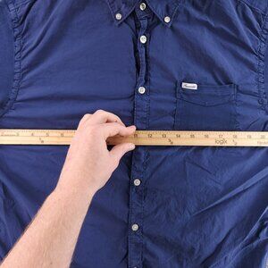 Faconnable Pique Knit Sleeves Back Pocket Mesh XL Button-Down Blue Pocket French
