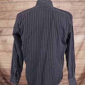 Faconnable Shirt Mens Small Black Gray Stripe Button Front Cotton Long Sleeve