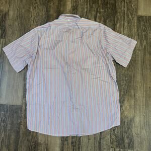 Faconnable Shirt Mens XL Blue Orange Stripe Button Down Short Sleeve France