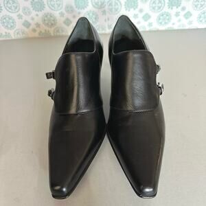 Faconnable Womens 5B Leather Ankle Booties Heels Buckle Details Made in Italy