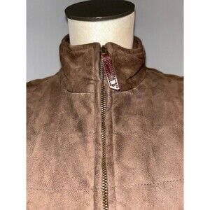 Faconnable Women’s Brown Goatskin Suede Quilted Vest size S Zip Up