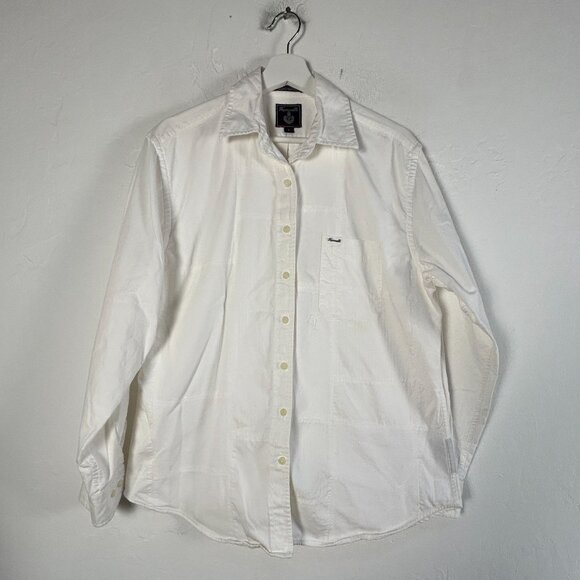 Faconnable Womens White Long Sleeve Button-Up Cotton Shirt Jacket Large Casual