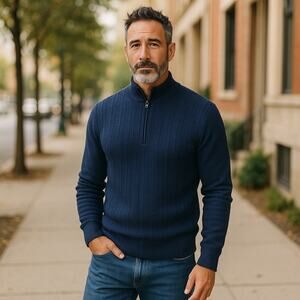 Faconnable Wool 1/2 Zip Sweater Pullover In Dark Blue Knit Cable Knit Size Large