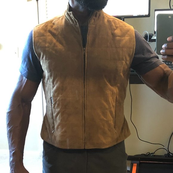 This is a great piece, but in my quest for minimalism... it must go. I have gotten so many compliments on this very unique, good looking and wonderfully fitting goat skin vest by Faconnable. Note that there is some discoleration (darkening) around the inside-collar due to my beard (see pics). Otherwise in great shape and an impossibly good deal.