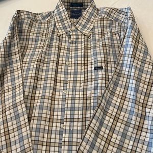 Rarely worn, dry, cleaned only blue tan and brown Faconnable button down shirt, size medium