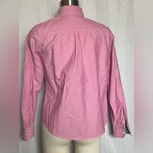 Pink with blue inset at collar and wrists. Crisp cotton is perfect with jeans or with suit jacket at office !