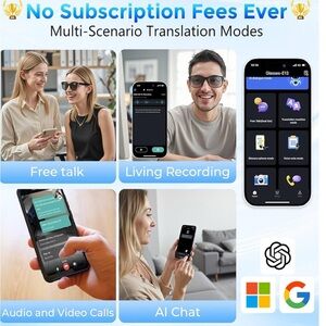 Comes with durable packaging to safeguard the glasses during shipping and storage, including 1 pair of smart glasses, 1 app manual and code, 1 glasses 1 charging cable, 1 instruction manual,