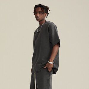 This vintage style oversized T-shirt features a cool raw hem that adds to an effortless street look. Made from 100% combed cotton, the tee is soft, skin-friendly, moisture-absorbing, and breathable. The faded fabric drapes nicely and gives off a timeless casual vibe.