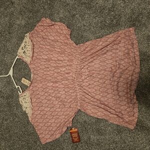 This charming blouse features a relaxed fit with delicate lace accents and a classic peter pan collar. The cap sleeves add a touch of elegance, making it a versatile piece for both casual and dressy occasions. Its soft fabric ensures comfort while maintaining a stylish look.