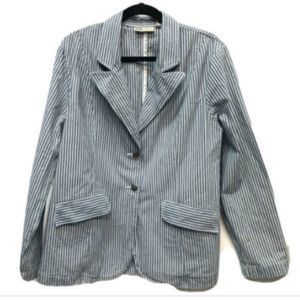 Faded Glory 1972 Womens Jacket White Blue Pin Stripes