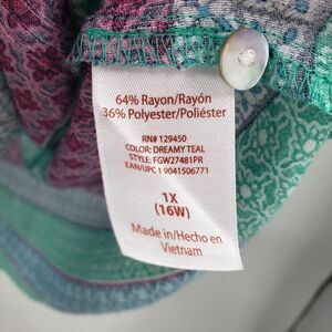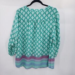 Faded Glory 1x Peasant Blouse Womens Plus Geometric Print Multicolor Top 16w