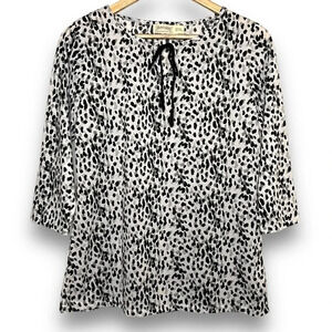 Faded Glory 3/4 Sleeve Peasant Top Womens Med Black/White Animal Print Rope Tie