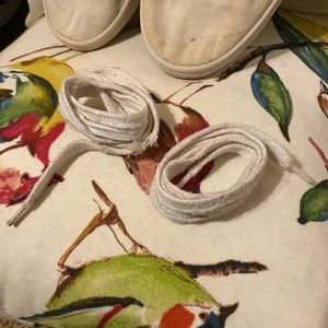 Laces have some fraying. Shoes could be restored, used for art, dyed, the possibilities are endless!