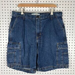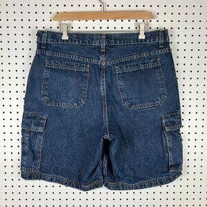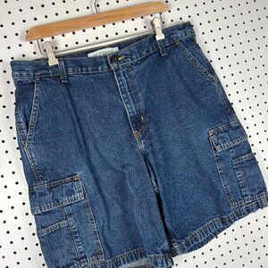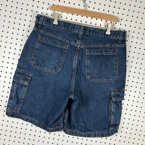 Faded Glory Baggy Denim Cargo Shorts Size 36 Cotton 10" Inseam Dad Costume 90s