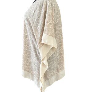 Faded Glory women's top, which features a beige and off-white geometric pattern and a loose, flowing fit with wide sleeves.