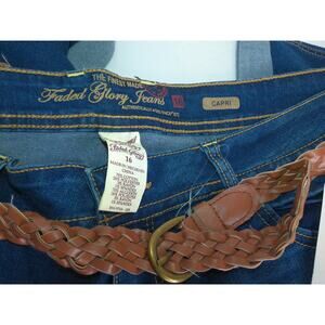 Faded Glory Belted Denim Capri Jeans Size 16 New