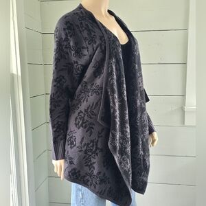 Faded Glory Black Gray Floral Knit Open Front Waterfall Cardigan Women's 1X