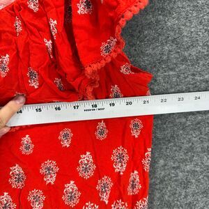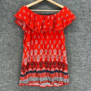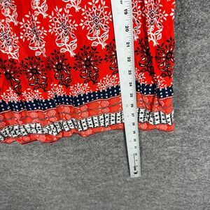 Faded Glory Blouse Women L Large Red Geometric Short Sleeve Round Neck Rayon