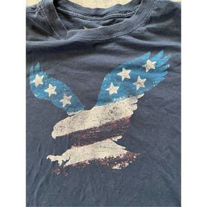 Blue short sleeve tee from Faded Glory. Eagle with red, white, and blue flag overlay. 100% Cotton. Machine wash cold inside out.