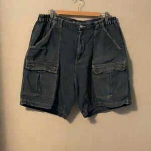 These Faded Glory blue cargo shorts offer a relaxed fit and a versatile style, perfect for casual outings. Crafted with a focus on comfort and functionality, they feature a classic cargo design ideal for everyday wear.