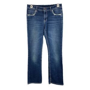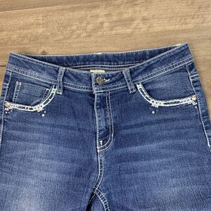 Description: Faded Glory Blue Denim Girls Youth Jeans Size 14 Straight Leg Flap Pockets Stretch