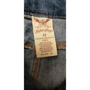 Faded Glory Blue Denim Mini Skirt Front Slit Faded Stretchy Size 12. This skirt is in excellent pre-owned condition. No stains, rips, or any signs of wearing to the fabric. Please read the measurements below to avoid a high volume of returns before placing your order. Thank you for your business and happy shopping!