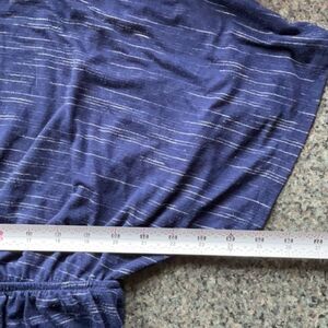 This Faded Glory blouse in a rich blue hue features short dolman sleeves and a relaxed, ruched style. The top's comfortable fit is enhanced by its soft, textured fabric and a gathered waistline that adds a touch of shape.