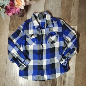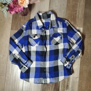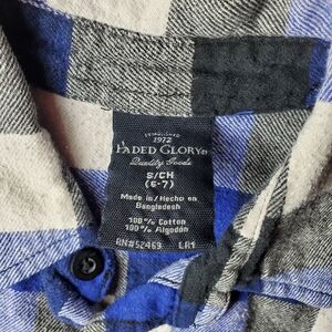 Faded Glory Blue Gray White Boys Flannel Shirt Size Small 6-7 EUC