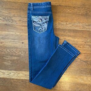 Faded Glory Boho Embellished Back Pockets Straight Leg Jeans Girls Size 14