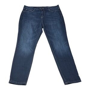 Stylish dark blue jeans with a straight leg design. Perfect for everyday wear. Waist 36” Inseam 28”