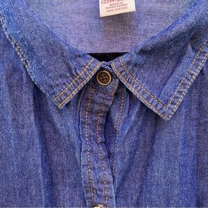 Faded Glory Dark Wash Chambray Denim Roll Tab Top Sz 3X