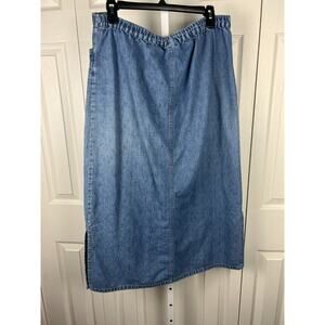 Faded Glory Denim Jean Midi Skirt 14 Blue Straight Modest Boho Cottage (Spots)