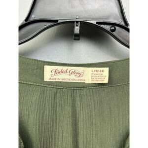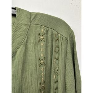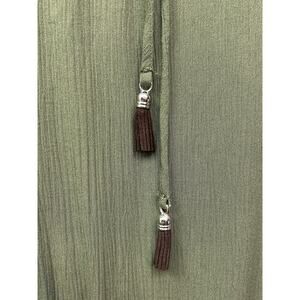 Faded Glory Dress Womens Large Green Sea Turtle Boho Embroidered Tassel Belted