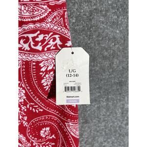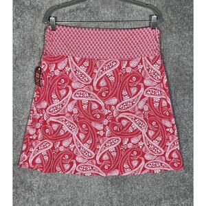 Faded Glory Flare Midi Skirt Womens Size LG Red Paisley Floral Pull On Stretch NWT
