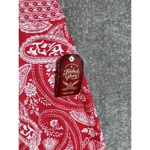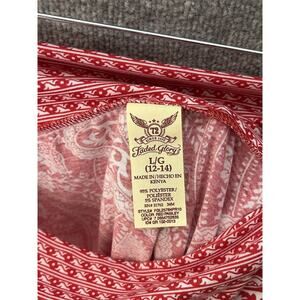 Faded Glory Flare Midi Skirt Womens Size LG Red Paisley Floral Pull On Stretch