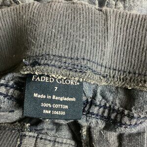 Faded Glory Girls Blue Cotton Cargo Pants Size 7 Adjustable Waist Pocket Design
