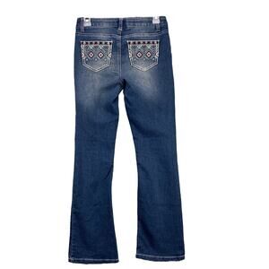 Description: Faded Glory Girls Boot Cut Jeans Size 12 Stretch Embroidered Pockets Adjustable Waist