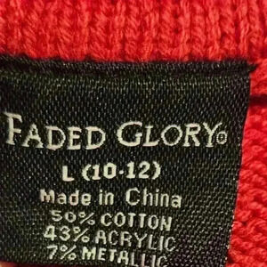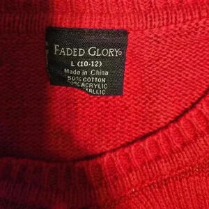 Faded Glory Girls Red Shimmer Short Sleeve Sweater Size Large 10-12 measurements pictured