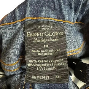 The Faded Glory Girls' Straight Jeans in blue offer a classic fit with an adjustable waist for comfort. Made from a soft blend of cotton, polyester, and spandex, these jeans are machine washable and easy to care for. Pre-owned and ready to wear. Size: 10.