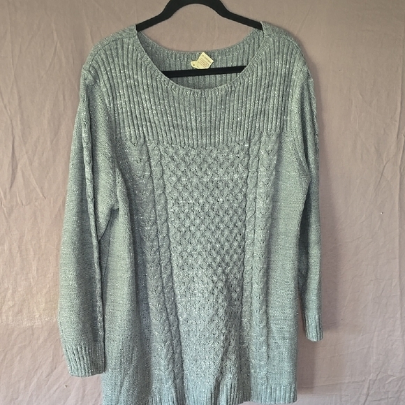 Faded Glory Gray Crew Neck Sweater with Cable Knit Design