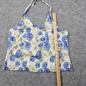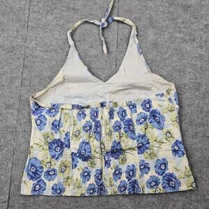 Faded Glory Halter Top Womens Large Y2K Blue Floral Cotton Coastal Festival Boho
