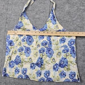 Faded Glory Halter Top Womens Large Y2K Blue Floral Cotton Coastal Festival Boho